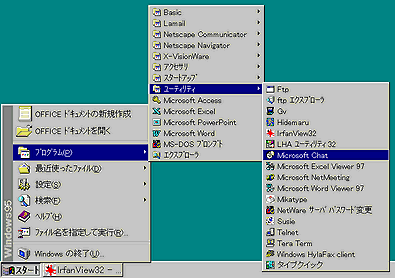 手順[スタート] -> [プログラム] -> [ユーティリティ] -> [Microsoft Chat] とたどり、Microsoft Chat を起動する。