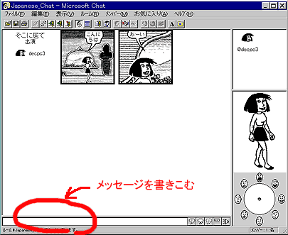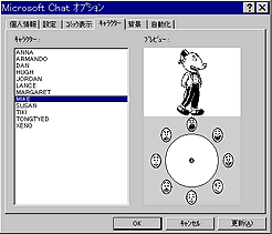 Microsoft Chat はメッセージに適当なキャラクタの表情を追加してくれる。
