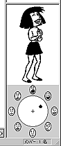 右下の丸い円盤の部分を用いて表情・動作?を変えることができる。またキャラクタを変更することもできる。